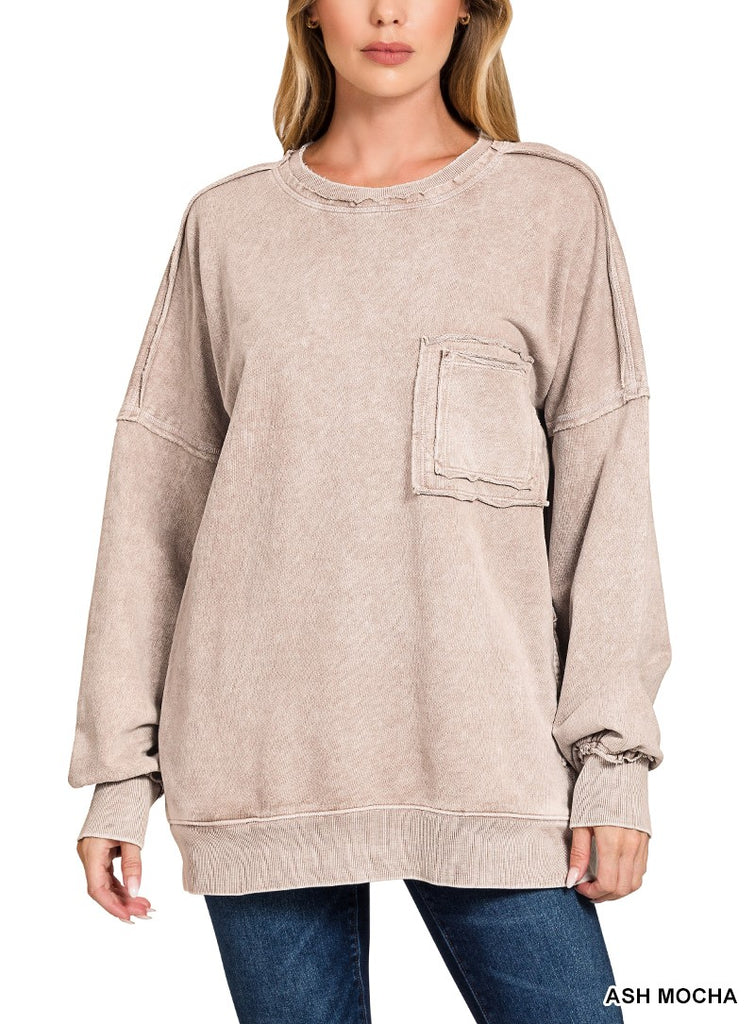 HALO WASHED FRENCH TERRY EXPOSED-SEAM SWEATSHIRT BY ZENANA