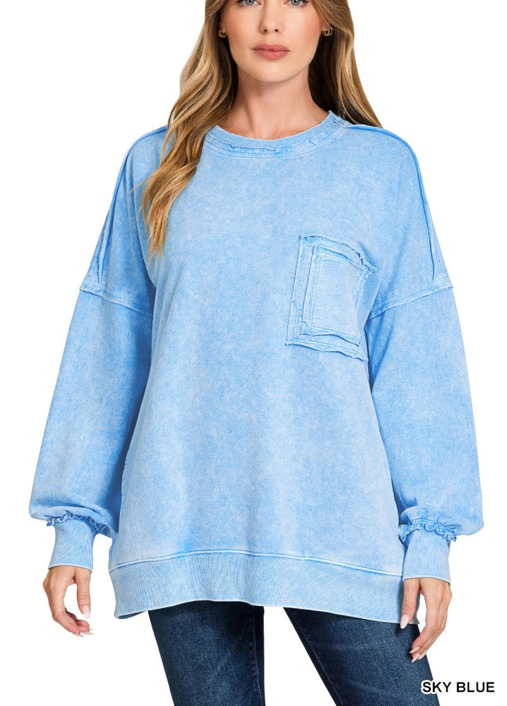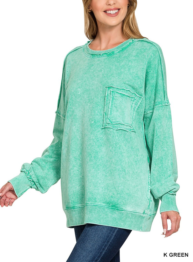 Halo Washed French Terry Exposed-Seam Sweatshirt by Zenana